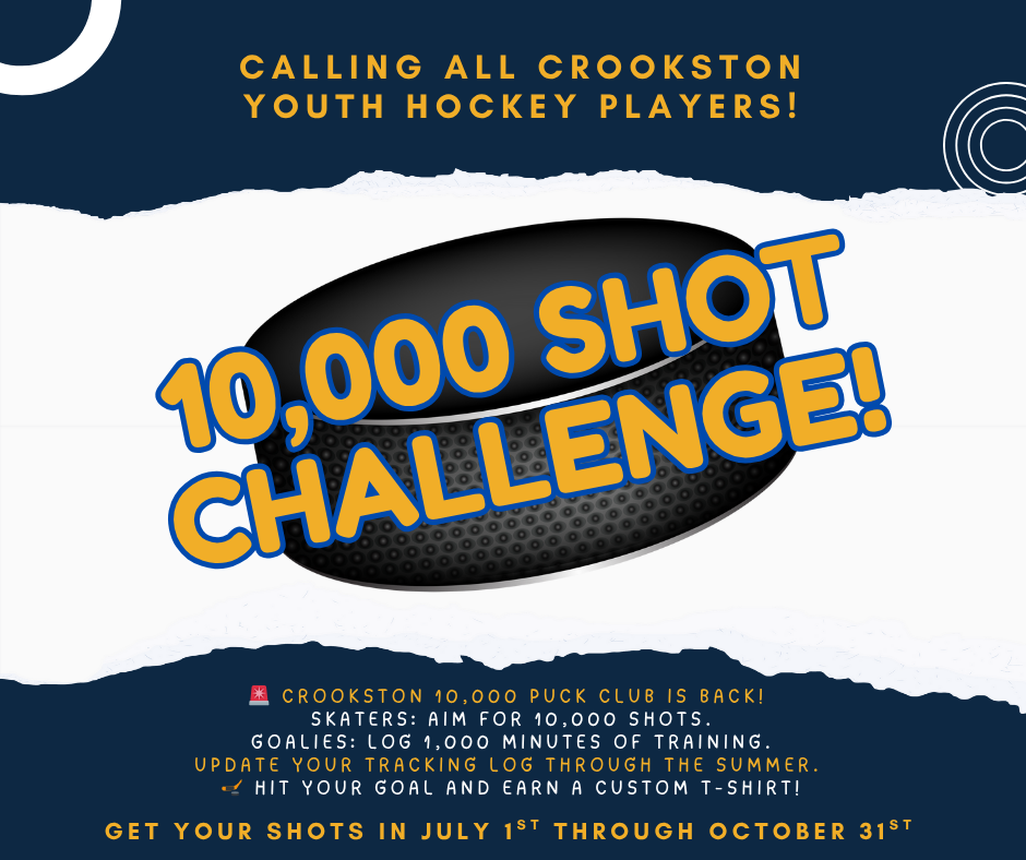 Players must track your shots on the 10,000 Puck Challenge Tracking Sheet.